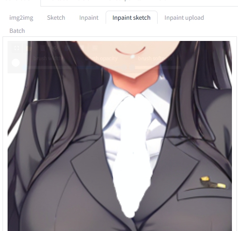肩の変なワッペンみたいなのがいらないのでinpaint sketchで塗りつぶす。